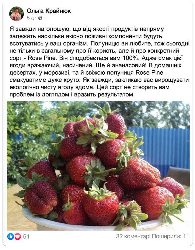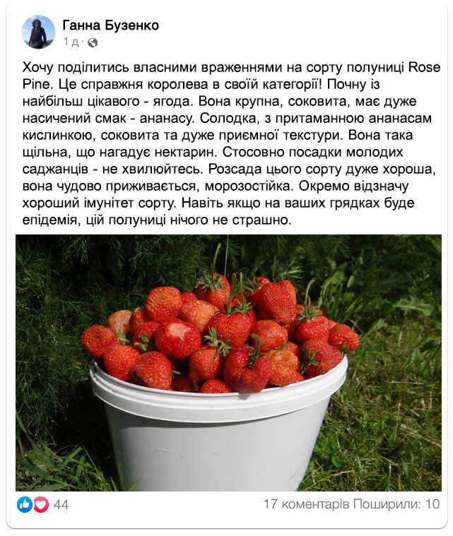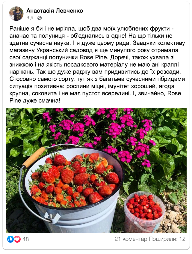 Замовляйте посадковий матеріал ананасної полуниці “Rose Pine” до кінця тижня за спеціальною ціною: