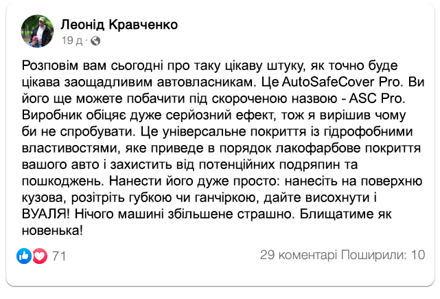 Спрей ASC Pro (AutoSafeCover) на захисті вашого авто від пошкоджень та корозії