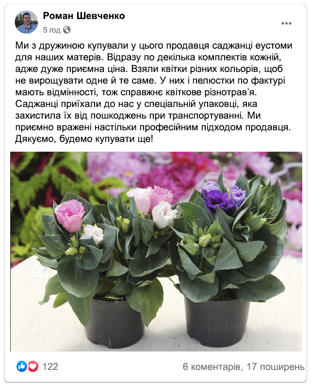 Встигни замовити посадковий матеріал кімнатної еустоми «Purple rose» за спеціальною ціною