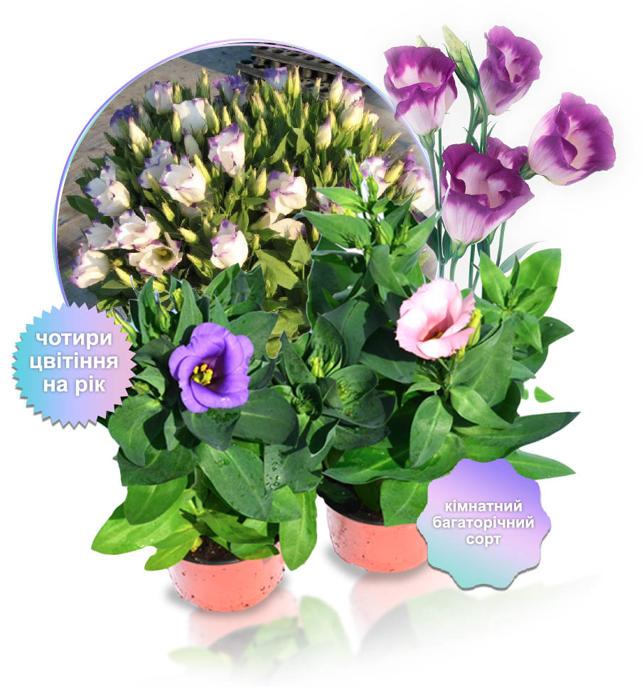 Обирай колір селекційної кімнатної еустоми «Purple rose»