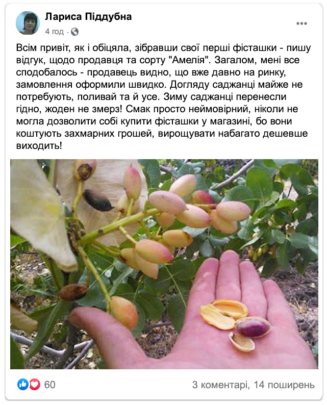До 8 кг фісташки за сезон! | Сорт стійкий до хвороб та морозів сорт! (-30°C) |