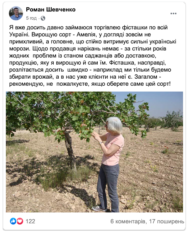 Особливості посадки фісташки сорту «Амелія»