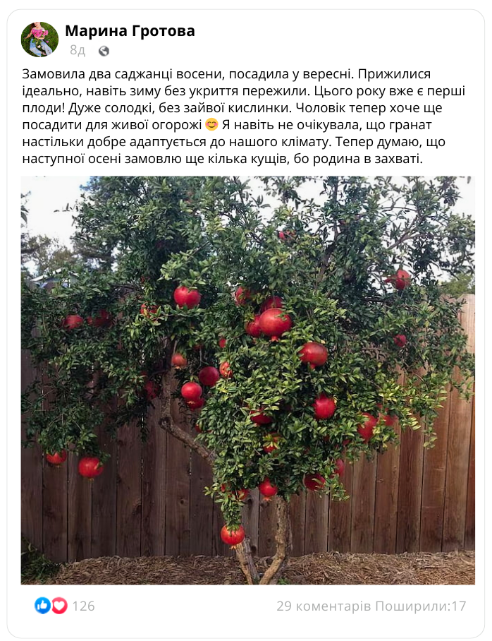 Гранат «Фламенко»: один з небагатьох сортів, що дає стабільні врожаї в умовах нашого клімату!