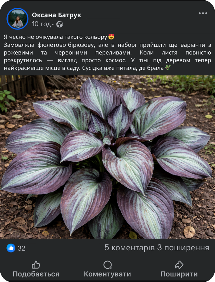 Хоста — це рослина, яка не потребує складного догляду. Вона добре росте у тіні та півтіні, не боїться прохолоди й підходить навіть тим, хто не має великого досвіду в садівництві. Достатньо підтримувати ґрунт злегка вологим і час від часу підживлювати рослину — цього цілком достатньо для гарного росту та пишного листя.
