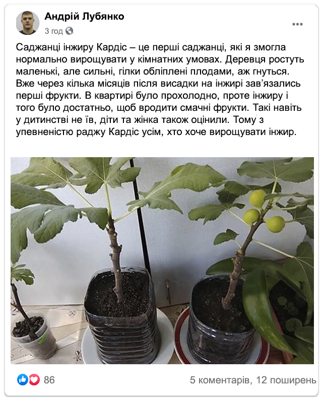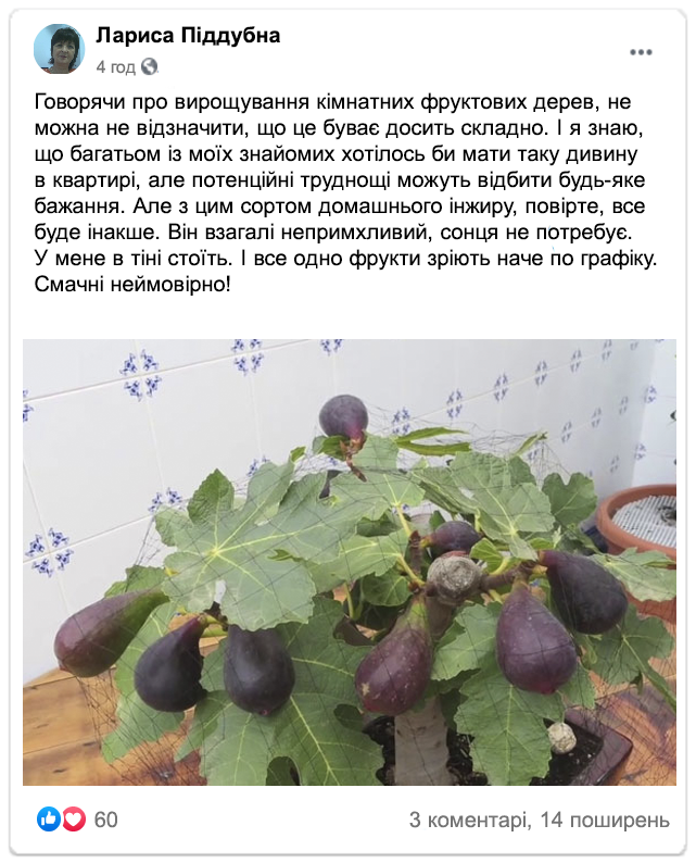 Кімнатний інжир вирощують по всій Україні