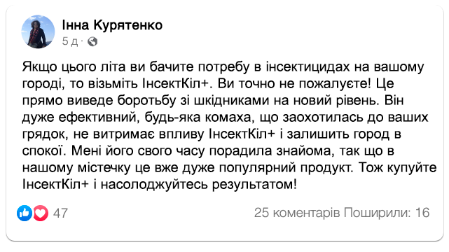 Про "ІнсектКіл+” в цифрах