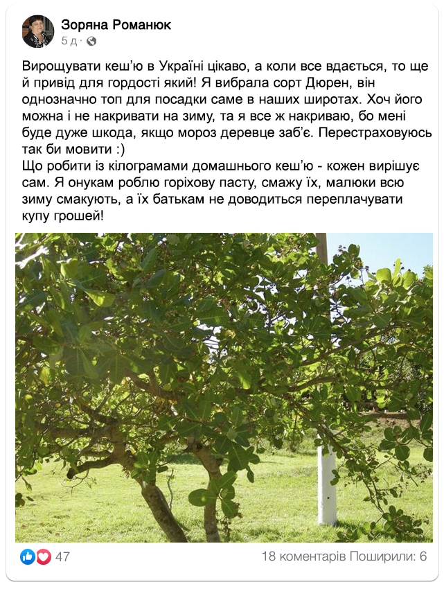 Кешʼю Дюрен: вирощувати не складніше, ніж волоський горіх