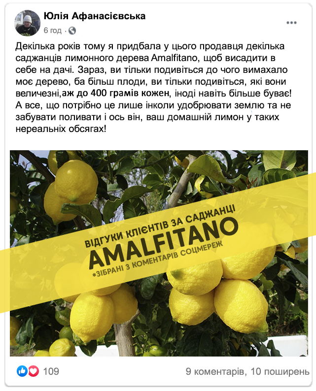 Встигни придбати саджанці лимонного дерева Amalfitano за спеціальною ціною: