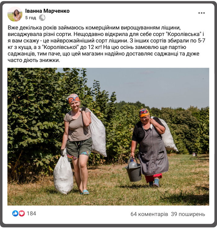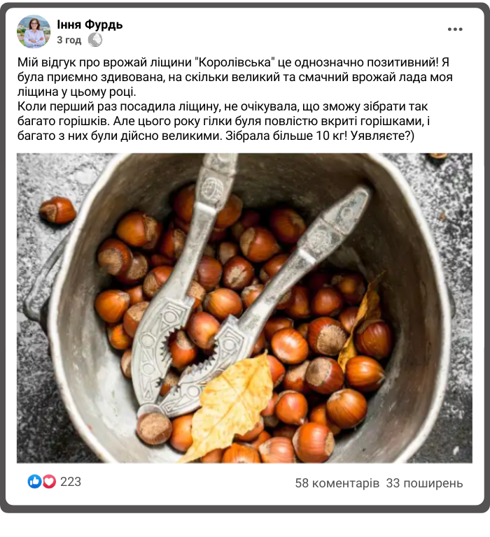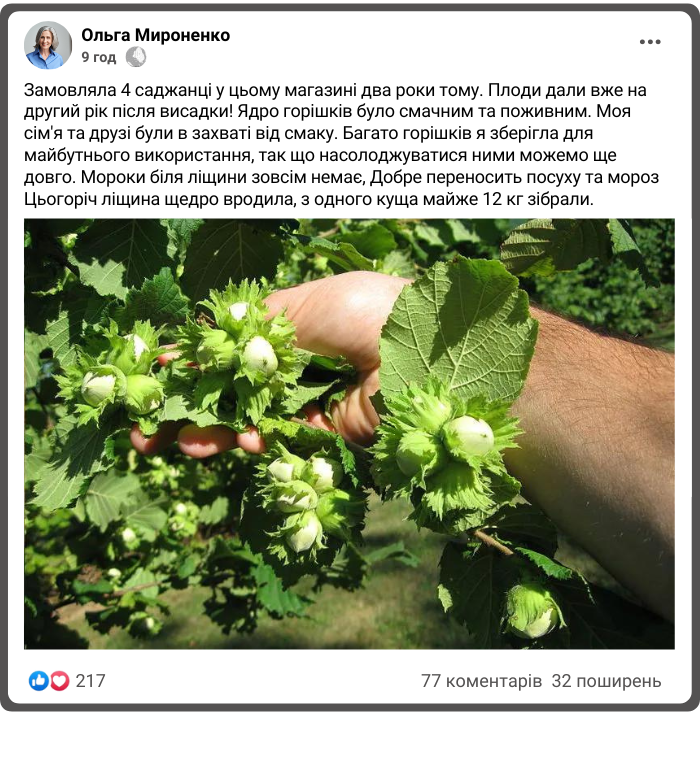 Саджанці ліщини "Королівська" - преміальний високоврожайний сорт