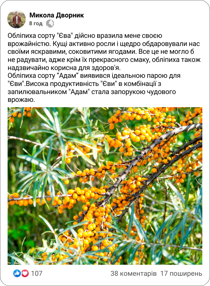 "Адам" - чоловічий сорт обліпихи з чудовою витривалістю