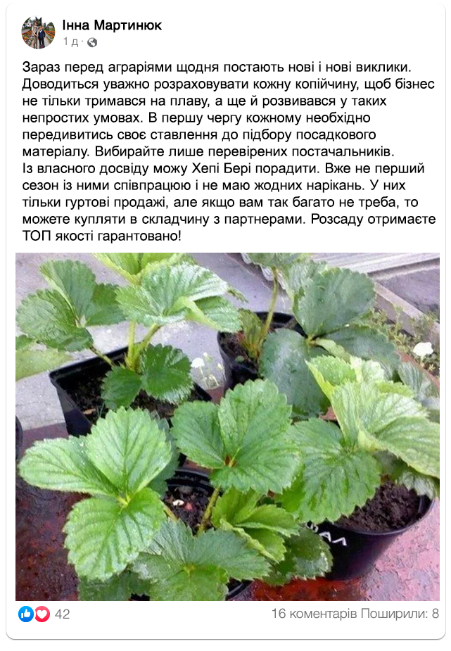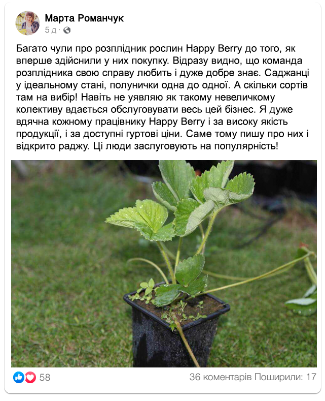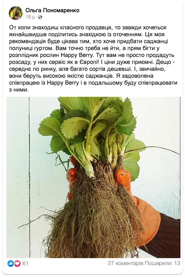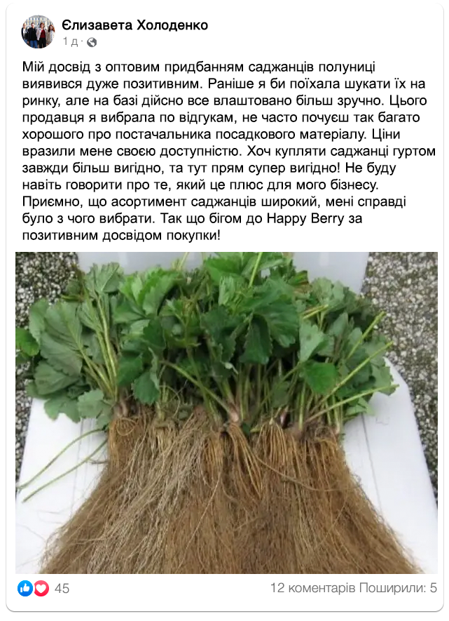Розплідник рослин "Happy Berry" – надійний та перевірений постачальник саджанців полуниці!