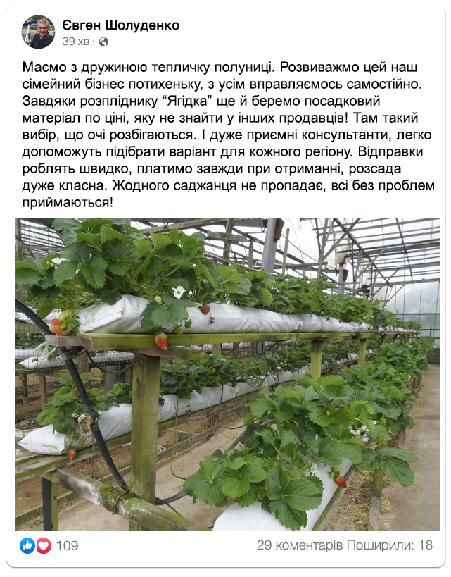 Фермерське господарство "Ягідка" – надійний та перевірений постачальник саджанців полуниці!