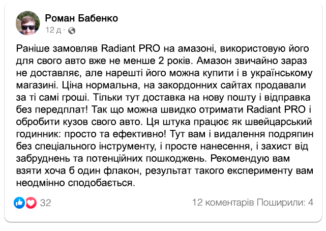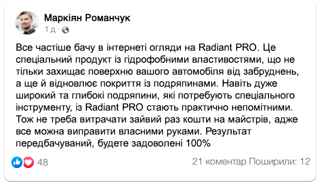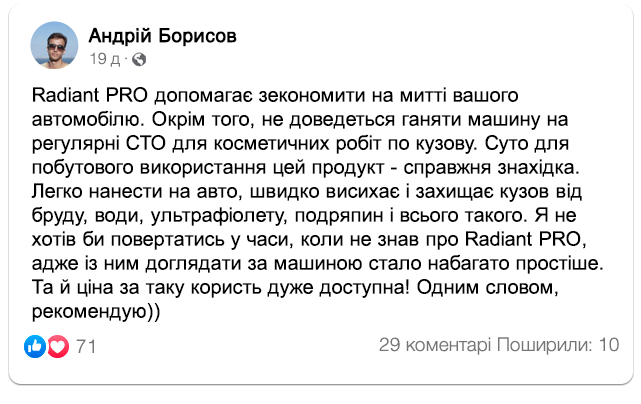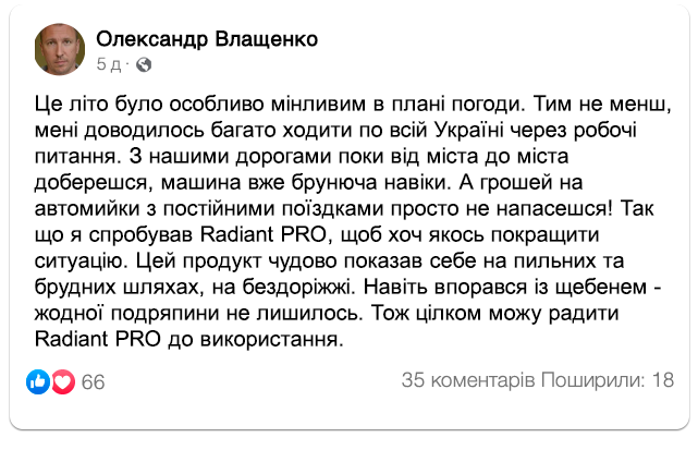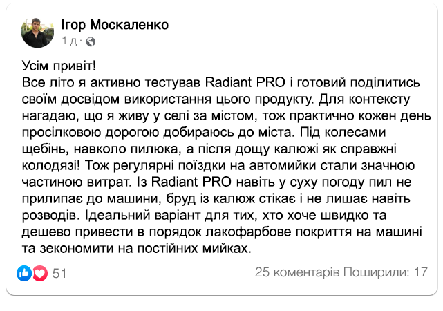 Відгуки автовласників на Radiant PRO