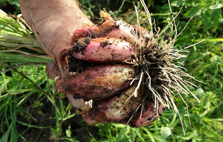 З однієї посадженої цибулини маю по 5–6, а то й більше. Гнізда виходять великі, масивні. Сушу прямо на городі, а потім — у коморі. Лежить шалот довго, не гниє. Навіть узимку свіженький, як з грядки.
