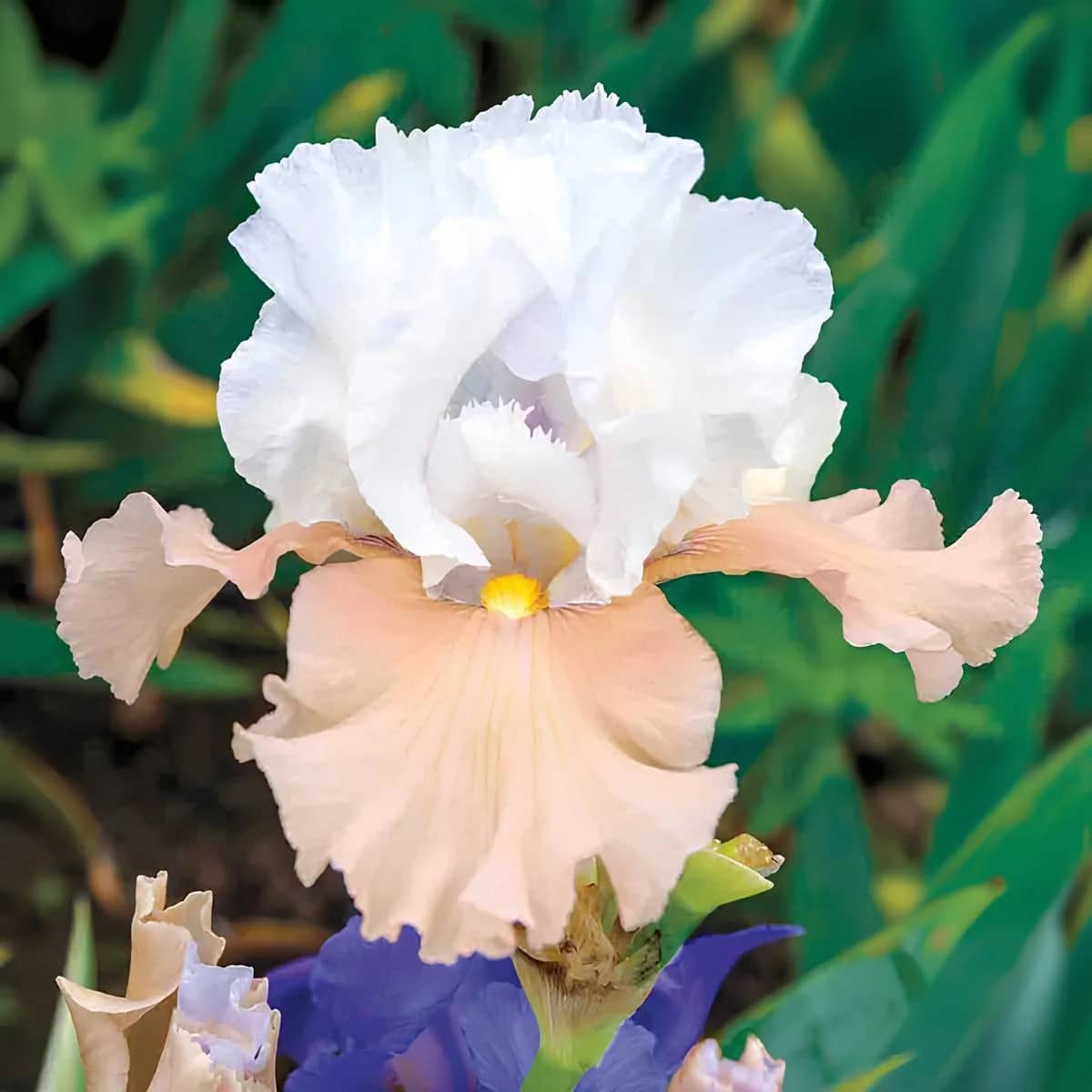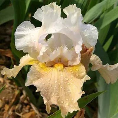 Цей елегантний бородатий ірис вражає м’яким кремово-білим кольором пелюсток із легким золотистим відтінком і шовковистою текстурою. "Champagne Elegance" — справжній символ вишуканості й легкості, ідеальний для тих, хто хоче додати в свій квітник ніжність, світло й аристократичний шарм. Він морозостійкий, невибагливий і прекрасно пристосований до українських умов.