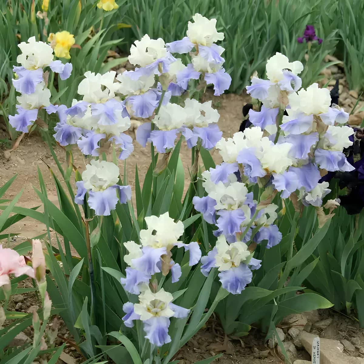 Цей чарівний сорт бородатого ірису вражає ніжним контрастом білосніжних нижніх пелюсток і світло-блакитного верхів’я. "Stairway to Heaven" ніби зійшов із небес, щоб подарувати вашій клумбі легкість, світло та гармонію. Витончені гофровані пелюстки випромінюють спокій і чистоту, а завдяки невибагливості у догляді і зимостійкості сорт заслужено став улюбленцем багатьох садівників.