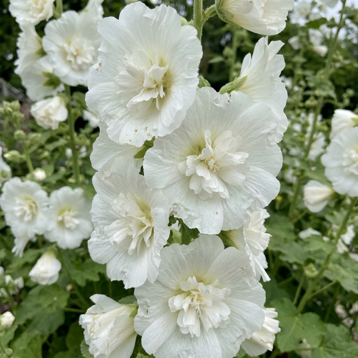 Цей сорт вважається еталонним серед махрових мальв. Його великі, півонієподібні квіти утворюють вертикальні “свічки” краси на міцних високих стеблах.