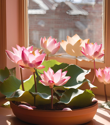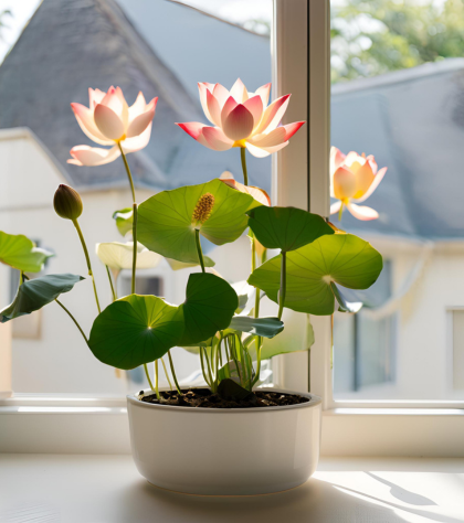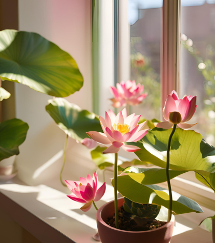 Лотос любить яскраве, але розсіяне світло. Ідеальним місцем для нього стане підвіконня на південному чи західному боці. Уникайте прямих сонячних променів, які можуть викликати перегрів.