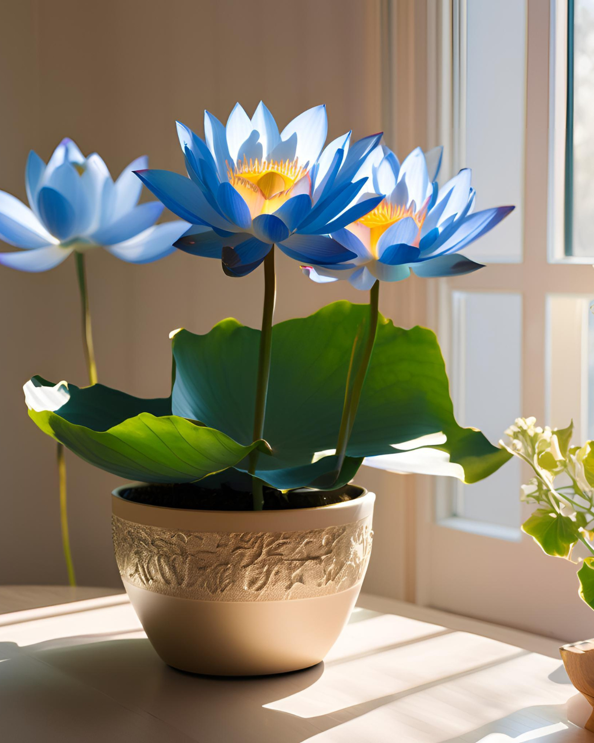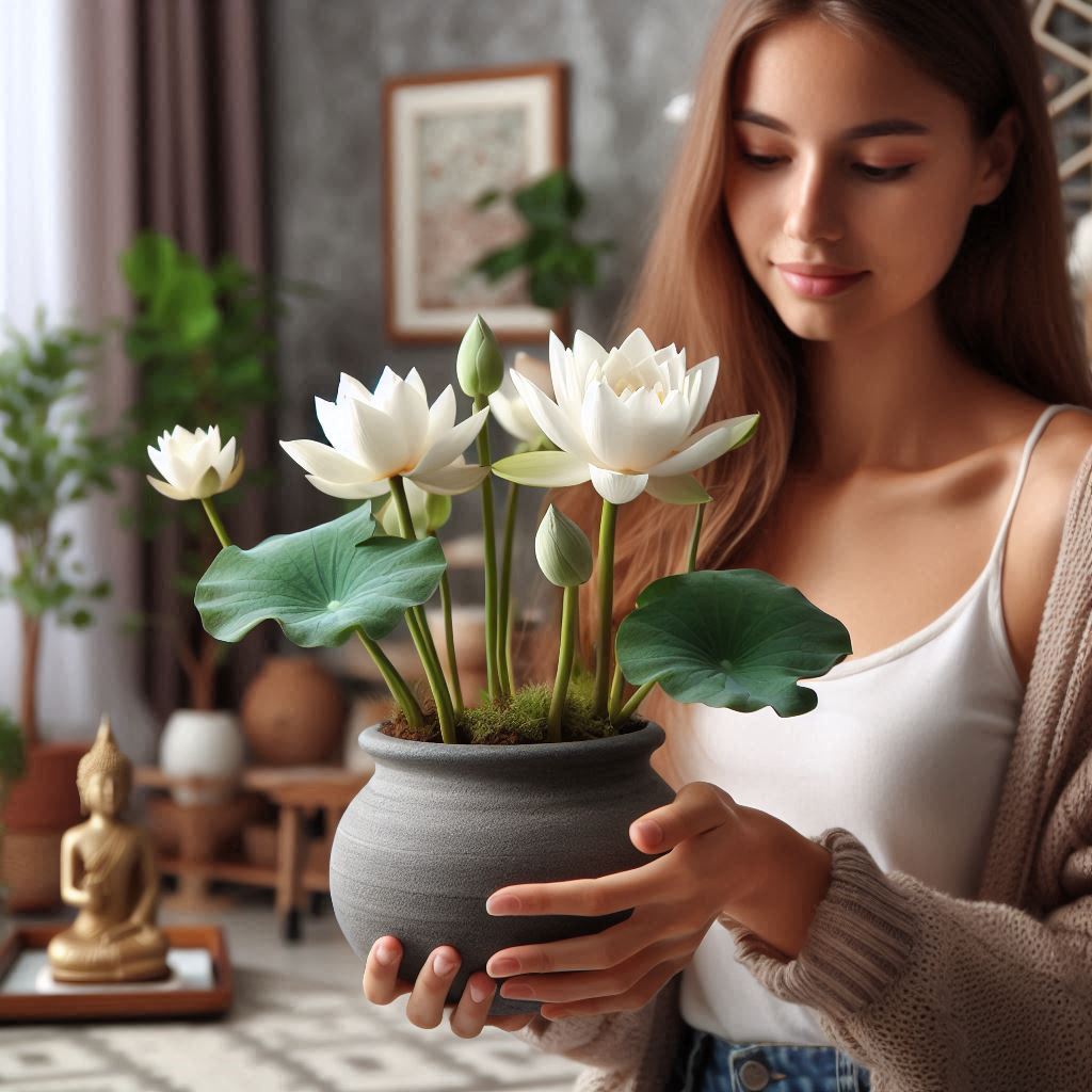 Лотос "Містерія" цвіте 4 разів на рік, забезпечуючи яскраві кольори в вашому домі. З правильним доглядом, ви можете насолоджуватися його квітами цілий рік, що робить його чудовою прикрасою для будь-якого простору.